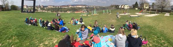 Am Samstag, den 06. April 2019 trafen sich die Familien des Waldkindergartens zur jährlichen Familienwanderung. Treffpunkt war diesmal an der Wallfahrtskirche Maria Ach, auf der österreichischen Seite der Salzach. Von dort ging es bei schönem Wetter erstmal flussabwärts. Am Fluss- und Waldrand gab es für die Kinder viel zu entdecken. Dann wurde ein Stückchen bergauf marschiert, dem Wanderweg der Naturfreunde folgend. Entlang des Salzachhanges wurde bis zum Spielplatz gewandert, mit wunderbarem Blick auf die Burg. Dort gab es die wohlverdiente Pause und alle genossen das mitgebrachte Picknick. Die Kinder hatten Spaß beim Toben und an den Spielgeräten. Gut gelaunt und frisch gestärkt ging es über das sogenannte "Schmaierl" wieder runter zur Salzach und zum Ausgangpunkt zurück.