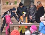 Die Waldmäuse empfingen die Gäste mit einem fröhlichen Lied und Sylvia Friede-Wenger, Leiterin des Waldkindergartens, begrüßte sie. Das Team und die Kinder hatten sich noch etwas Besonderes ausgedacht. Sie spielten die Geschichte von der Idee des Anbaus bis zu dessen Realisierung in Form eines Theaterstücks nach. Auch die Ehrengäste wurden darin eingebunden. An entsprechender Stelle wurden sie von der „Waldmaus“ an den Planungstisch geführt und durften ihre Rolle persönlich übernehmen.