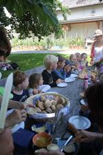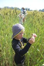 Ende Juni wollten wir natürlich noch so ein richtiges Getreidefeld bestaunen – unser eigenes war ja doch etwas klein. Auf dem Gallenbachhof bei Taufkirchen begrüßten uns Claudia und Hilarius ganz herzlich und luden uns in ihren gemütlichen Garten zum Verweilen ein. Nach einer ersten Stärkung und kräftigem Teig-Kneten, ging es bei hitzig-heißen Sommertemperaturen ins hochgewachsene Getreidefeld. Die Ähren überragten nicht nur uns, sondern auch ein Reh, welches dann aber schnell das Weite suchte. Bauer Hilarius erklärte allerlei und Claudia sorgte mit frischen Semmeln und leckerer Pizza für den kulinarischen Genuss.